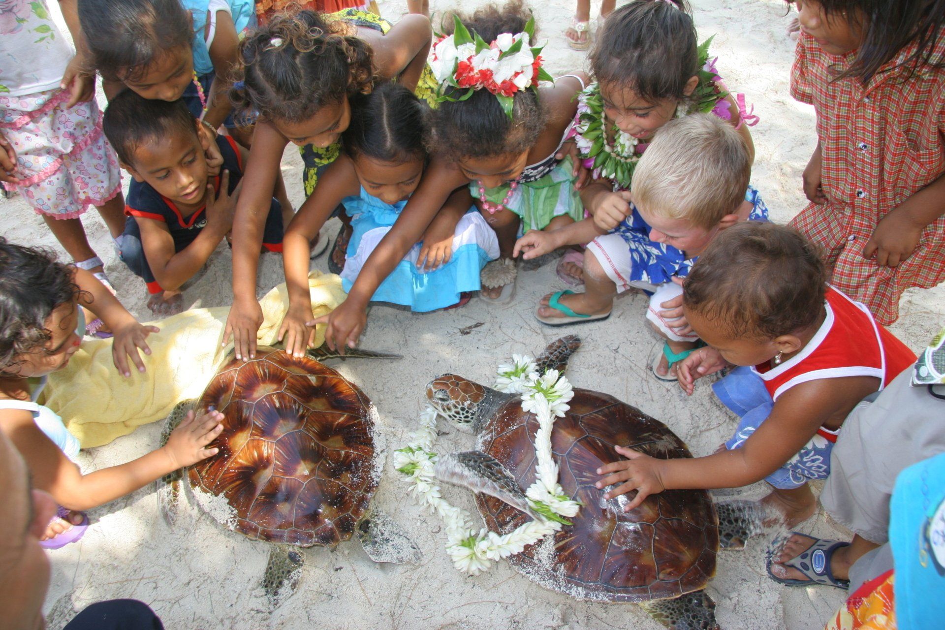 Green sea turtles (Chelonia mydas) are seriously threatened by poaching in French Polynesia. Indeed, every year dozens of adult turtles coming to lay eggs on the rare Polynesian sites, such as the atolls of Scilly or Mopelia, are massacred for commercial purposes. Turtles are eaten for their flesh and not for their eggs, which remains an illegal practice, sea turtles being protected in French Polynesia. The slow reproductive cycle of turtles does not allow them to cope with this human pressure and can lead this species to extinction in the short term. It would be a shame if future generations could not see these sacred animals. We are witness to this phenomenon and have saved several 10th animals since 2005.