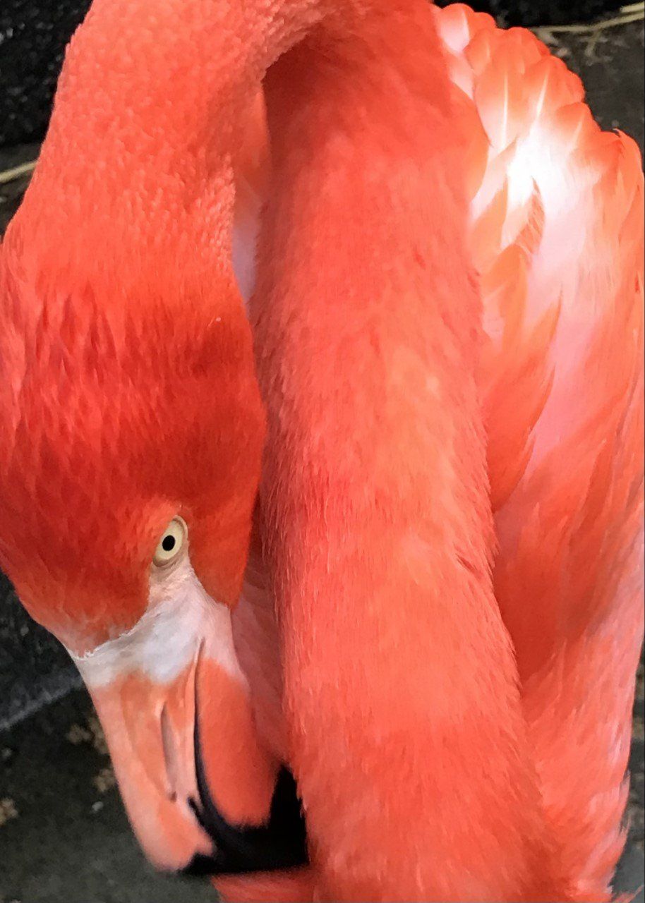 Les flamants étant particulièrement fragiles des pattes, des soins fréquents des pieds sont pratiqués en hiver. Des facteurs externes peuvent intervenir comme la prédation. Ce fut le cas, une nuit de novembre 2020, avec l'attaque d'un renard sur le groupe de flamants de la Ménagerie du jardin des plantes. Plusieurs oiseaux furent tués et quelques uns blessés. Un individu avec plusieurs blessures au thorax et au croupion, fracture d'une côte, hémorragie interne, fut sauvé alors que son pronostic vital était engagé. Après plusieurs chirurgies et anesthésies de contrôles, s'en est suivie une longue convalescence isolé de son groupe. Malgré une perte de poids non négligeable de 400 gr (pour un poids total de 2,3 kg), son état s'est amélioré après six semaines de soins. Il a pu réintégrer son groupe au bout de 2 mois!