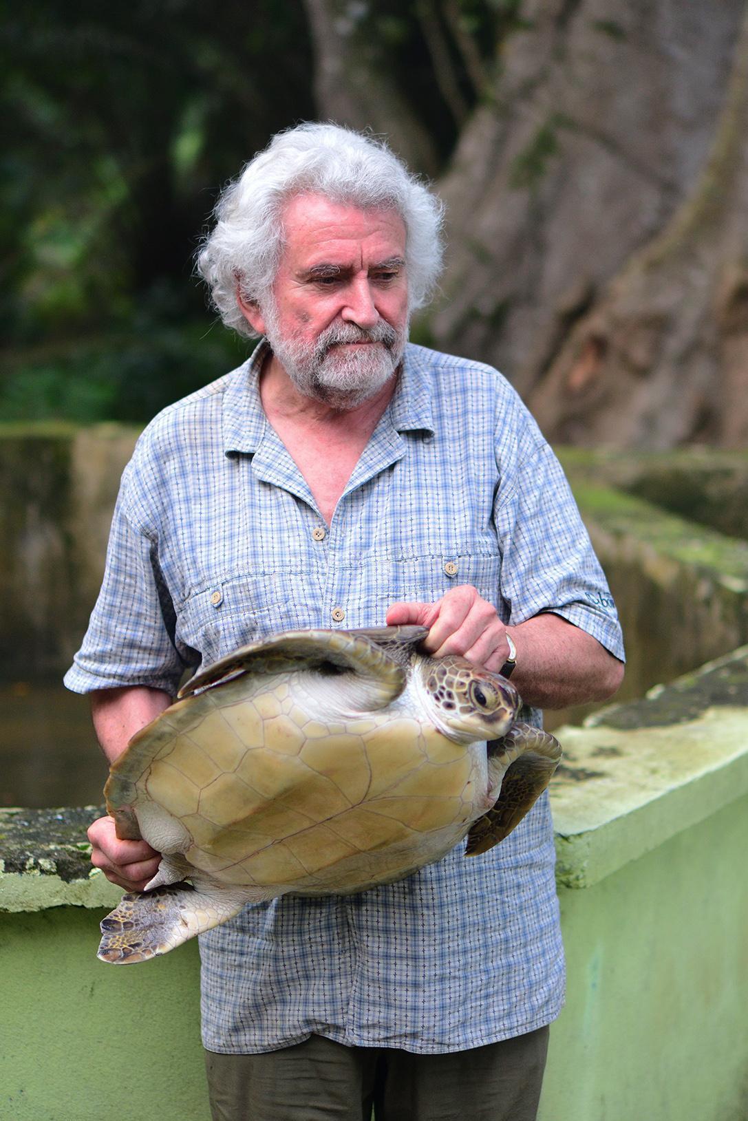 Interview en anglais du Président de l'association par un média américain au centre de protection de tortues marines du Méridien Bora Bora.