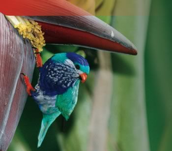 Formerly quite widespread in the Polynesian archipelagos, the ultramarine lori has seen its numbers melt like snow in the sun due to the introduction of the black rat. Today its population is restricted to the Marquesas Islands, also colonized by the black rat. Still present in the last century, this vini has disappeared from the islands of Nuku Hiva, Ua pou, Tahuata, and Hiva oa. It remains today only on the island of Ua Huka, free from the black rat... with less than 1000 pairs.