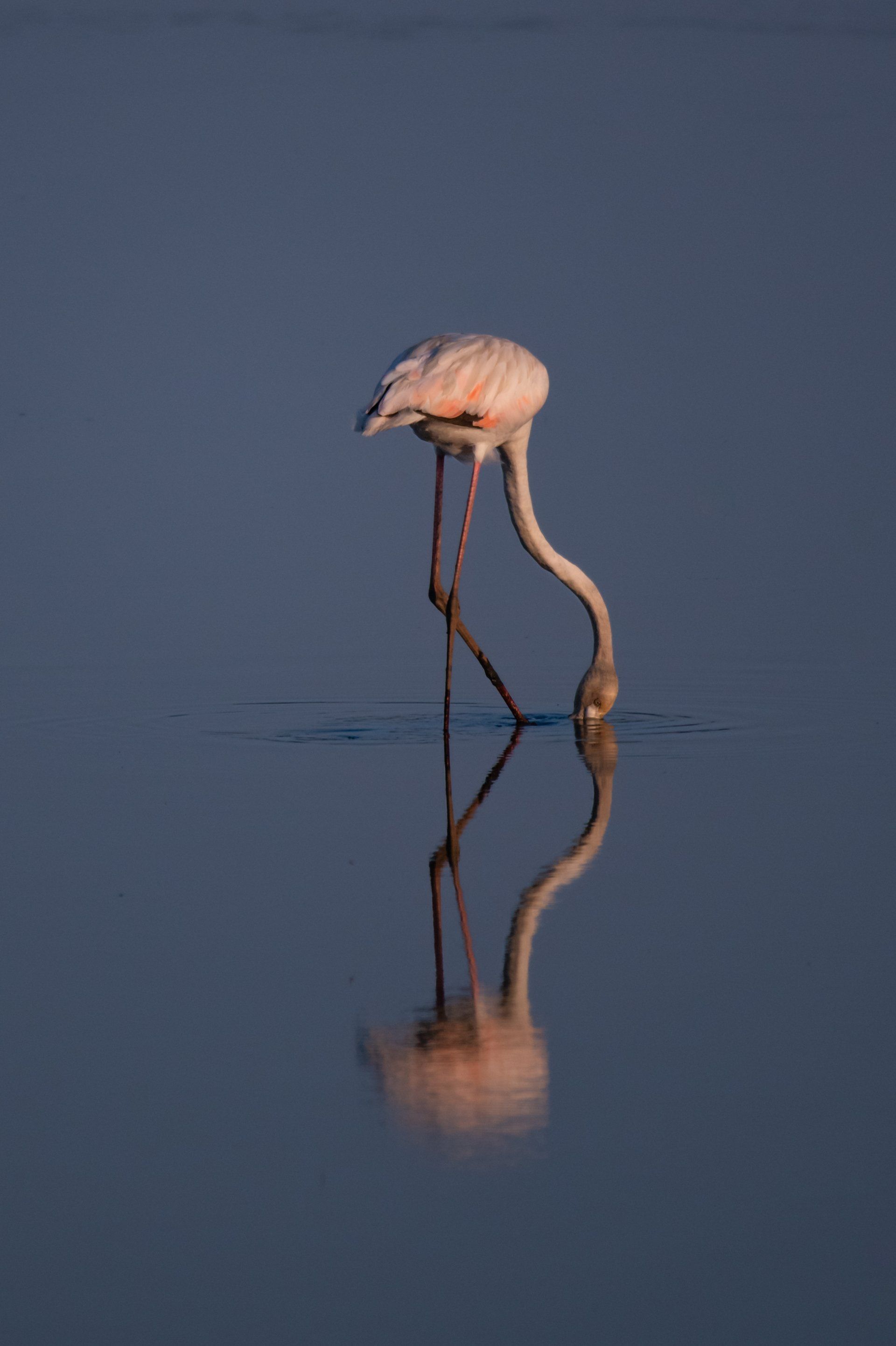 Ils possèdent un outil de filtration des plus efficaces! Les flamants passent une très large partie de la journée à la recherche de leur nourriture dans des lacs, delta et marais d'eaux saumâtres et salées. Leur bec en forme de chistera de pelote basque, est formé d'une mandibule inférieure et supérieure dentelée. L'eau passant à travers ces "petites dents" est filtrée à la façon d'une baleine avec ses fanons (voir le schéma). Le flamant claque constamment sa langue, qui est elle même recouvert de petits poils à sa surface, afin de filtrer et avaler les nutriments tout en rejetant le surplus d'eau par le bec.